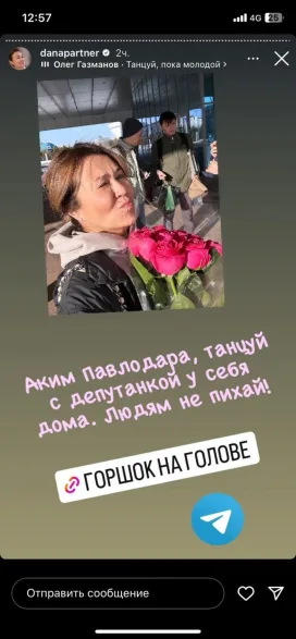 Чтобы проследить, как Орманбаева развивала свой скандал с Даримовой, постарайтесь максимально сконцентрироваться. Итак, Дана приехала из Эмиратов в Казахстан заработать чтением лекций на тему «Родительское собрание». Перед ее визитом в Павлодар друзья Даримовой попросили депутата с большим числом подписчиков по-дружески, то есть даром, проанонсировать эту лекцию в своих соцсетях, а еще самой посетить за деньги. Та проанонсировала, потом посидела, заскучала и тихонько ушла, не дожидаясь окончания. А было это в разгар судебного процесса над БИШИМБАЕВЫМ. Дана в то время показательно восхищалась братом убитой Салтанат НУКЕНОВОЙ Айтбеком АМАНГЕЛЬДЫ (потом она его так же показательно разлюбила), а Даримова высказалась о брате нелестно. Так вот, уход блогера со своей лекции Орманбаева назвала… вредительством семье убитой Салтанат.