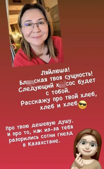 «Самая настоящая змея в лице местной деп-хабалки, наносящей в данный период гнусный ядовитый вред не только жителям города, но и близким убитой Салтанат, — написала соавтор Алии НАЗАРБАЕВОЙ в соцсетях. — Жаль, что мне указали на неё позже, когда змея уползла в свою нору. Знай я часом ранее детали её коварства, надела бы ей цветочный горшок на голову прямо там.