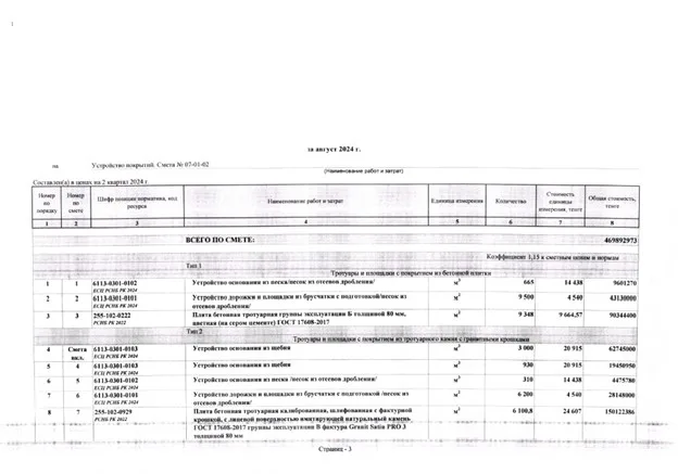 Однако за август 2024 года опубликованы сметы и акты выполненных работ. Так мы узнали, что год назад AN GROUPS при проведении работ использовало брусчатку стоимостью 24 607 тенге за квадратный метр. Такой брусчаткой они уложили 6 100,8 квадратных метра. Стоило это 150 122 386 тенге.