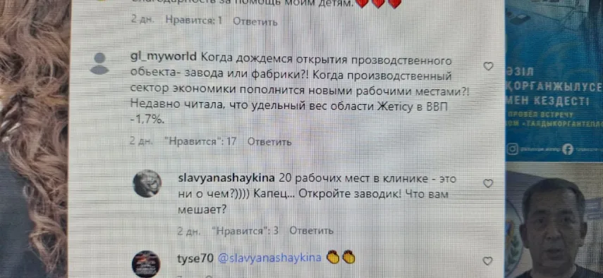 Как отмечают в акимате города, в новой клинике эстетической и пластической медицины будут трудоустроены 15 человек, всего в городе работает 60 государственных и частных лечебниц. Информация об открытии новой клиники опубликована на официальных интернет-аккаунтах городского акимата. Под публикацией немало комментариев с требованием открывать в городе производственные объекты и поднимать экономику.