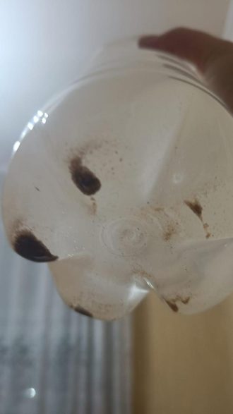 Сразу же после запуска из кранов темиртаусцев полилась вода с рыжей глиной, песком, кусками чёрной грязи и чего-то вроде мазута, появился мутный осадок. Понятное дело, что пить это нельзя. Горожанам пообещали, что глина стечёт из нового водопровода и всё будет хорошо.
