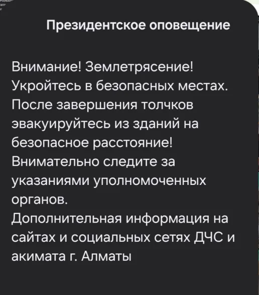 В воскресенье, 21 сентября, алматинцы получили «президентское оповещение» о землетрясении.