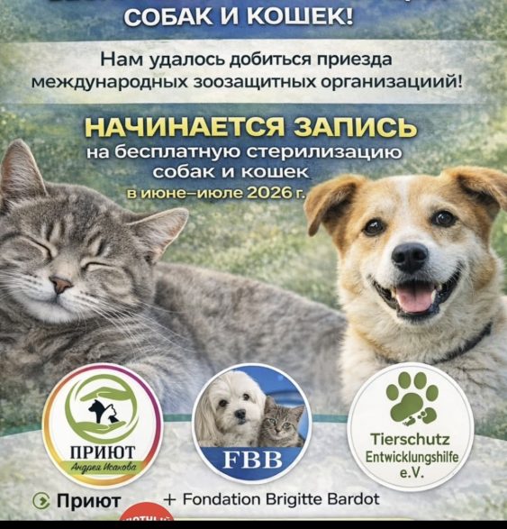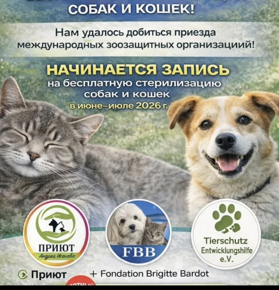 В Петропавловск приедет международная команда ветеринарных специалистов для проведения бесплатной стерилизации собак и кошек. Это станет возможным благодаря Fondation Brigitte Bardot (фонд знаменитой французской актрисы Брижит БАРДО) и зоозащитной организации Tierschutz Entwicklungshilfe e.V. Операции будут проводиться бесплатно на базе Петропавловского приюта Андрея ИСАКОВА ориентировочно в июне-июле.