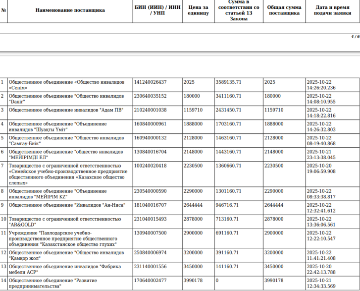 «Согласно протоколу об итогах, «Общество инвалидов «Сенім» заняло первое место. Однако сами представители организации утверждают, что цена, указанная ими в заявке, была значительно выше той, что оказалась в итоговом документе. Аналогичные неточности были выявлены и в отношении других участников. После обращения поставщика в службу технической поддержки веб-портала государственных закупок «FinQoldau» им был предоставлен ответ об отсутствии выявленного сбоя: «Цена поставщика составляет 2025 тенге – технической ошибки не обнаружено», — сообщили нюансы в Палате предпринимателей ВКО.