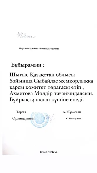 Межрайонный суд по уголовным делам города Семея дал Молдир 6,5 лет лишения свободы, приговор вступил в законную силу.