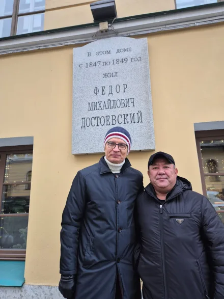 — Прием в Питере был на самом высоком уровне, встречали нас генералы, — рассказывает Бауыржан Макулбаев. – Сказали, что с каждым годом будут все больше расширять клуб, чтобы сделать его международным сообществом. Гуляли в Петергофе. Из 400 гостей было более 40 генералов силовых структур и четыре Героя России. Музыкальное сопровождение делал Игорь НИКОЛАЕВ и его команда. На торжественном собрании выступили председатель Законодательного собрания Санкт-Петербурга, генерал ФСБ, депутаты, в том числе всем известная актриса Анастасия МЕЛЬНИКОВА. Потом слово было предоставлено мне, я зачитал поздравительное письмо от совета ветеранов Генпрокуратуры РК, с которой согласовал свою поездку. Перед поездкой у нас с организаторами была договоренность, что никаких политических лозунгов и политических тем не будет, потому что политику могут озвучивать наши президенты, а не мы. Поэтому никакой политизации моего присутствия там не было. Праздник удался. Моим гидом по Санкт-Петербургу был Славик – так я его называл, нас поселили в одном отеле и мы много общались. Потом выяснилось – кто этот Славик. Я заикнулся о своем сокурснике – таможеннике из Выборга, а Славик сказал, что там нет такого сотрудника. Я тогда спросил: А вы что, в таможне работаете? Он ответил: Я генерал-лейтенант таможенной службы, был начальником таможни Москвы, в апреле вышел в отставку. А я Славик – Славик. Скромный, интеллигентный, простой. Я таких генералов первый раз вижу. Вячеслав РОМАНОВСКИЙ (он на снимке – О. В.). Его, оказывается, многие наши знают.