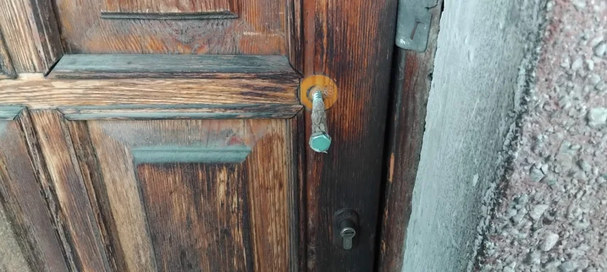 На стене помещения висит табличка с надписью: «Билетная касса», на пороге здания лежит огромный лохматый пёс. Но самое удивительное – это ручка двери: длинный гвоздь, чем-то обмотанный сверху. Внутри помещение также наводит ужас, не считая трёх приветливых работниц.