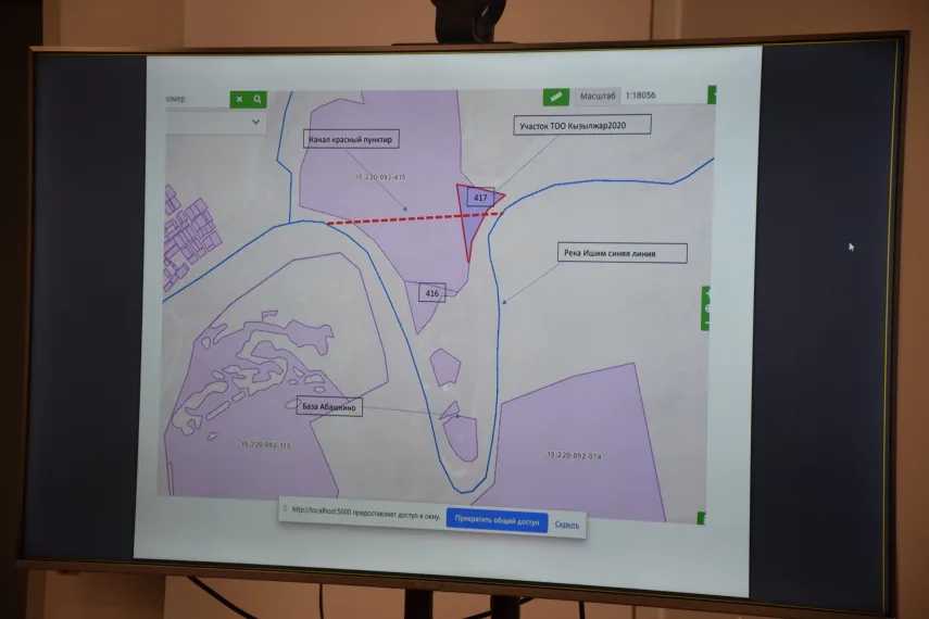 В феврале этого года, на фоне введённого режима ЧС, акимат Кызылжарского района Северо-Казахстанской области временно изъял один из трёх участков, принадлежавших ТОО «Кызылжар 2020», для прокладки обводного канала от реки Есиль в целях защиты от паводков. Однако, как заявили представители товарищества, занимающегося лесоразведением, канал затронул не только изъятую землю, но и соседний участок, который остался в землепользовании предприятия и официально не был изъят. Кроме того, канал полностью отрезал доступ к третьему участку ТОО, на котором расположены базы и строения предприятия, что делает невозможным ведение хозяйственной деятельности.
