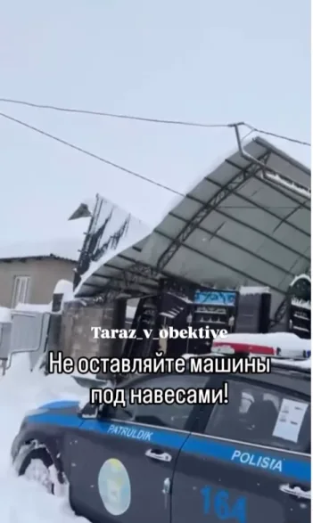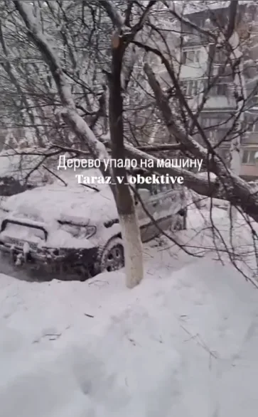 По сведениям из таразских Instagram-пабликов, в областном центре были зафиксированы несколько случаев обрушения деревьев и навесов частных домов. Конструкции и деревья не выдержали снега.
