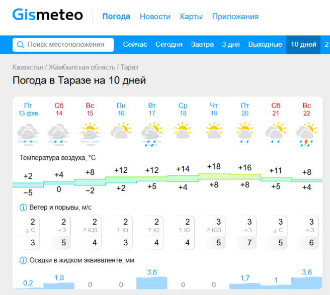 По данным сайта gismeteo.kz, в последующие семь дней температура пойдет вверх. В четверг, 19 февраля, она может достигнуть +18 градусов.