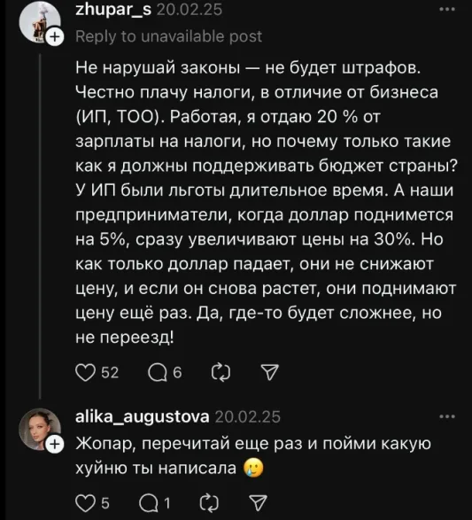 Что касается соцсети Threads, то уже сейчас она занимает лидирующие позиции как площадка для выражения несогласия. Её используют не только казахстанцы, но и жители США, выступающие против политики ТРАМПА. Пока чиновники гордятся целыми фабриками троллей и группами блогеров, ещё никому не удавалось переломить ситуацию в свою пользу именно в Threads. Многие громкие скандалы начинаются именно там.