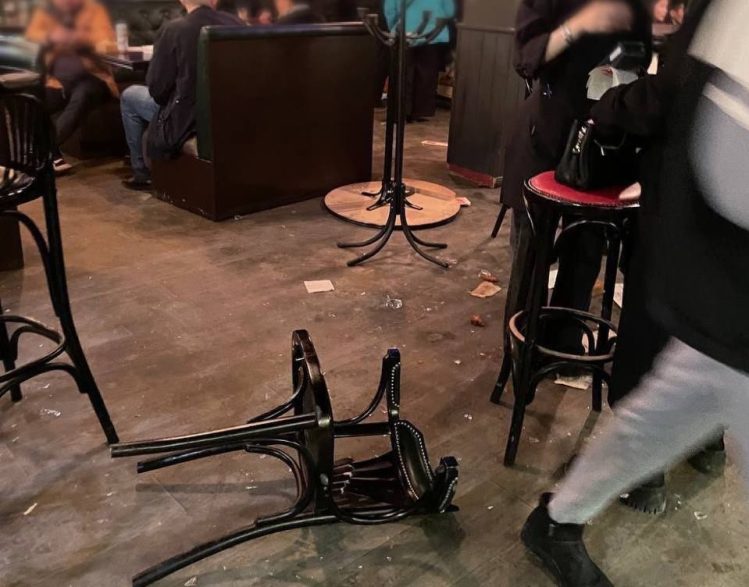 Порезав и своих, и чужих, мужчина наконец успокоился. Сотрудники бара стали звонить в полицию и скорую помощь. Раненые начали сами себе делать перевязки, чтобы остановить кровь. При этом перевязывались электрошнурами от караоке.