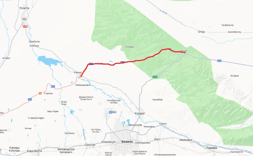 Стоит отметить, что расстояние между селами Кайнар и Кенен через новую трассу перевала Кордай составляет около 80 км.