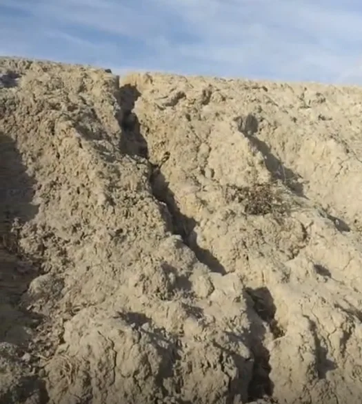 Люди отмечают, что возведение вала происходило в холода, при минусовой температуре. Когда промерзший грунт оттаял, он дал усадку. А после дождей часть глины вообще сползла вниз на дорогу.