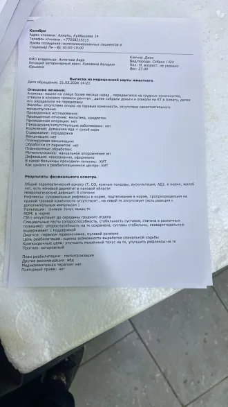 — В Джека стреляли. Одна из пуль прошла через позвоночник и повредила спинной мозг. Три дня он лежал на улице в селе Еркин, не имея возможности встать и самостоятельно передвигаться. Все проходили мимо, пока его не обнаружили волонтёры группы «Кот и пёс» и не организовали срочную доставку в клинику для обследования. По результатам КТ, проведённого в ветеринарной клинике, был установлен тяжёлый диагноз — 5 степень неврологического дефицита. При этом у Джека сохранены рефлексы задних конечностей. У него есть шанс научиться спинальной ходьбе и жить полноценной жизнью. Для этого необходима длительная реабилитация. Сейчас также идёт расследование и поиск тех, кто так жестоко покалечил этого пса. Мы верим, что виновные будут найдены и понесут наказание по закону. В настоящее время Джек проходит курс реабилитации в центре «Колибри», — сообщила нам Аида Ахметова.