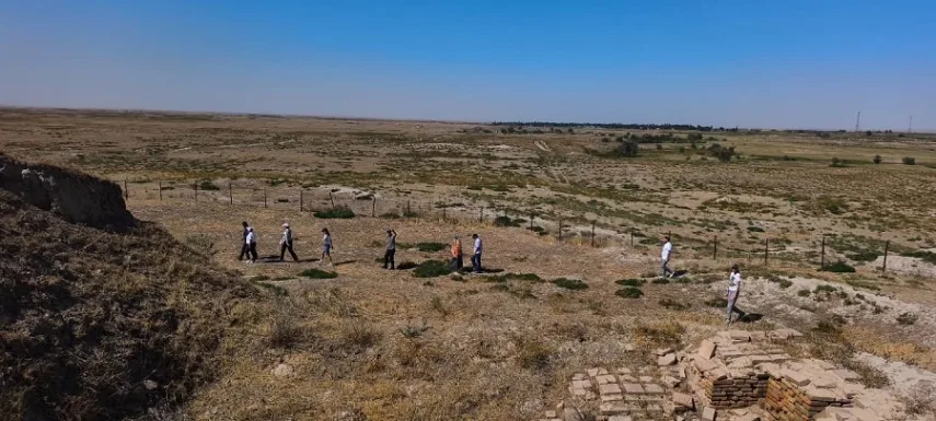 Рядом с дворцовым комплексом была найдена баня, типичная для того времени. С холма ее хорошо видно. А чуть подальше была мечеть – минарет сейчас ушел вниз, в песок и глину метров на семь. Ученые минарет раскопали, изучили и… закопали. Таким образом законсервировали строение до лучших времен. А для туристов сделали реконструкцию верхней части минарета из современных материалов. Но рядом на обрыве видны старые кирпичи – их много, и можно представить, какое это было большое здание…