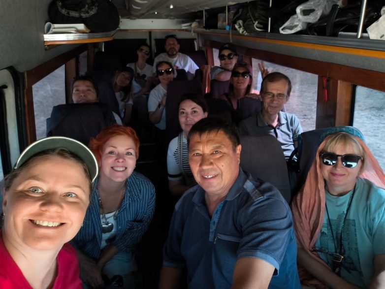 И у нас придумалась насыщенная и интересная программа путешествия. Схематично это выглядело так: рано утром в субботу мы (а было нас 14 человек) выехали на микроавтобусе из Алматы в Кордай, и Искандер выехал туда же из Тараза. Встретились, разместились отеле (о, это будет отдельное повествование – про региональные отели и кафе). И сразу же отправились изучать регион.