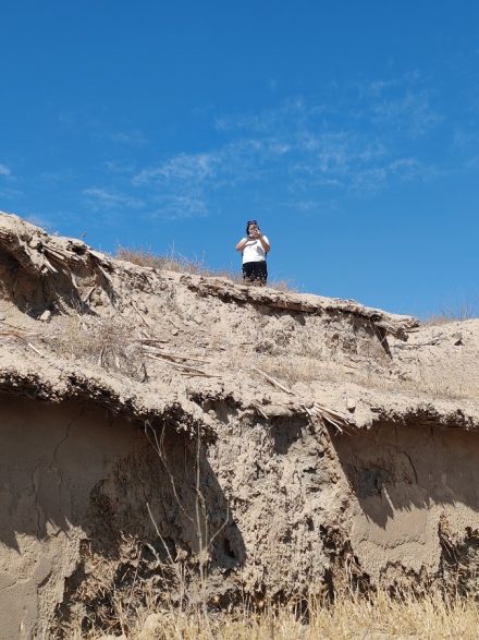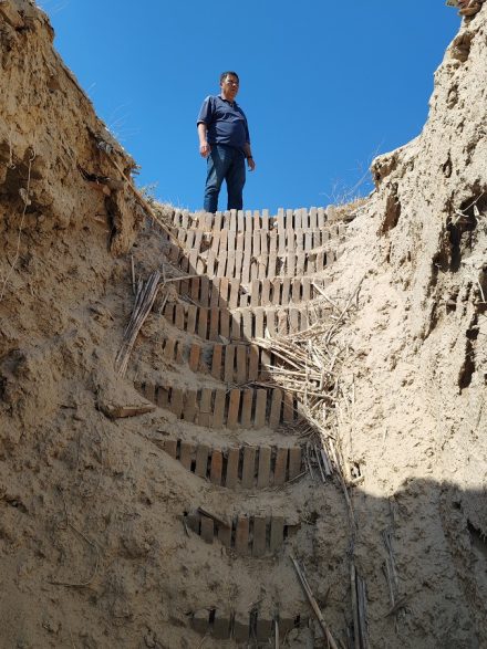 Рядом с дворцовым комплексом была найдена баня, типичная для того времени. С холма ее хорошо видно. А чуть подальше была мечеть – минарет сейчас ушел вниз, в песок и глину метров на семь. Ученые минарет раскопали, изучили и… закопали. Таким образом законсервировали строение до лучших времен. А для туристов сделали реконструкцию верхней части минарета из современных материалов. Но рядом на обрыве видны старые кирпичи – их много, и можно представить, какое это было большое здание…