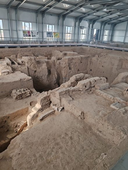 Из плюсов – реконструкция выполнена из тех же материалов, из каких строился город много лет назад. То есть можно увидеть, как возводились стены, из чего делалась крыша – не во дворцах, а скорее в обычных жилищах того времени. Важно — в стенах оставили небольшие «окошечки» в которых видно, как выглядит стена сейчас. А все остальное законсервировали – то есть покрыли глиняным раствором. До лучших времен, видимо. Когда появятся деньги и средства сделать достойно и надежно.
