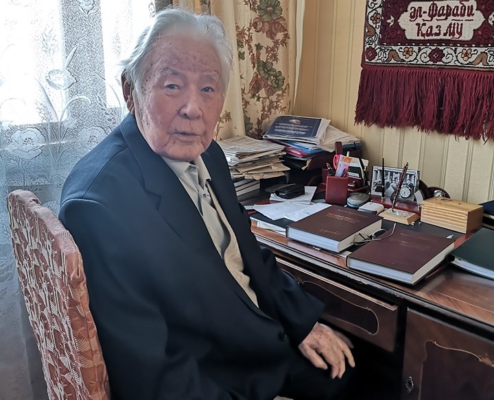 «В 1974 году учёный впервые организовал комплексную экспедицию в Шуйский район Жамбылской области на городище Актобе, а в 2006 году локализовал его как исторический город Баласагун».