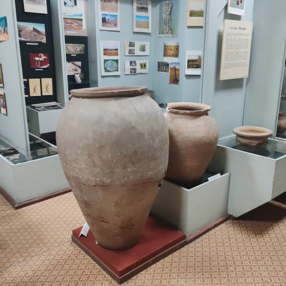 Рада, что нашей группе пытливых путешественников удалось попасть в археологический музей при КазНу. Кстати, открыт он был в 1983 году при непосредственном участии и по инициативе Уахита Шалекенова. В этом очень небольшом по размерам, но очень ёмком по содержанию музее выставлены артефакты эпохи бронзы, раннего железного века и средних веков. Очень интересная экспозиция, каждый экспонат «говорящий», и мы там зависли надолго, особенно, конечно, тщательно разглядывая артефакты древнего городища Актобе.
