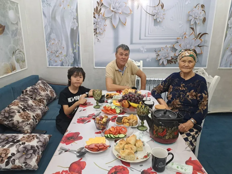 Бабушка мальчика гостеприимно накрыла стол, за которым мы смогли и пообедать, и поговорить. Стало известно, что у маленького певца есть сестренка Жасмин. Их отец по национальности казах, а мама – Жанна КИМ – кореянка. На один из концертов в Алматы, куда Темуджина пригласили играть, отец не смог поехать. Тогда его сопровождала бабушка.