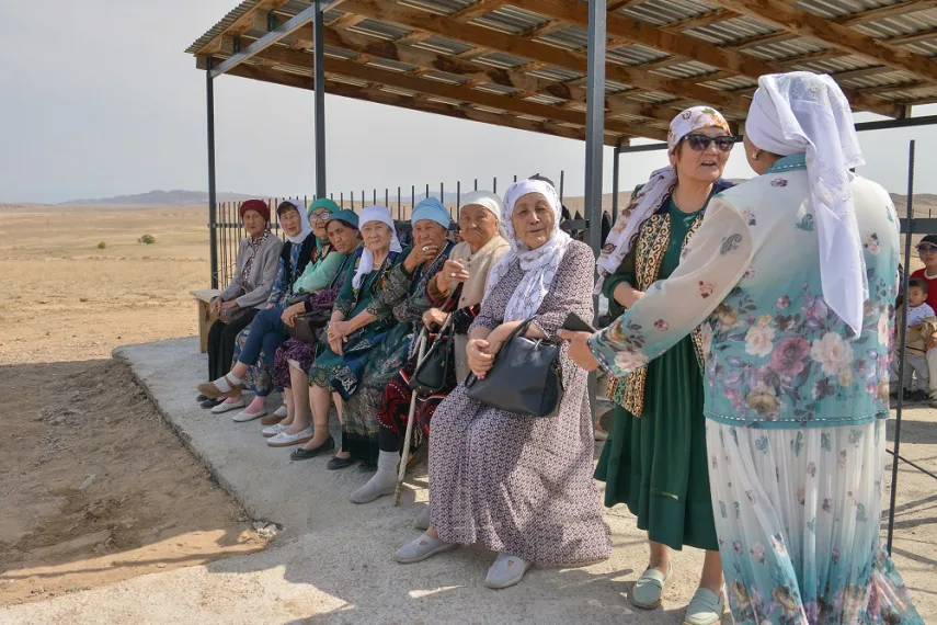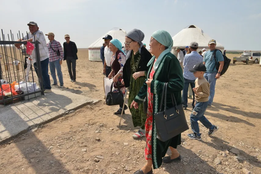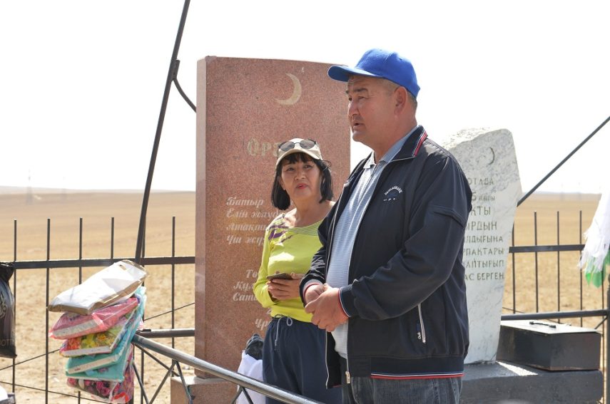 Здесь, в степи, в 1995 году по инициативе одного из потомков был поставлен простой обелиск. И это место и является местом ежегодного аса – каждый сентябрь многочисленные потомки Оракты батыра собираются на его родине.