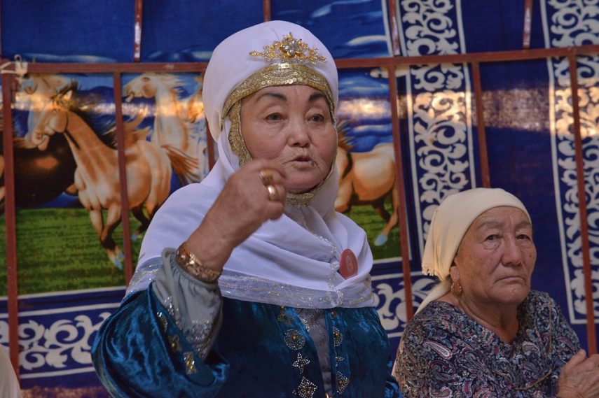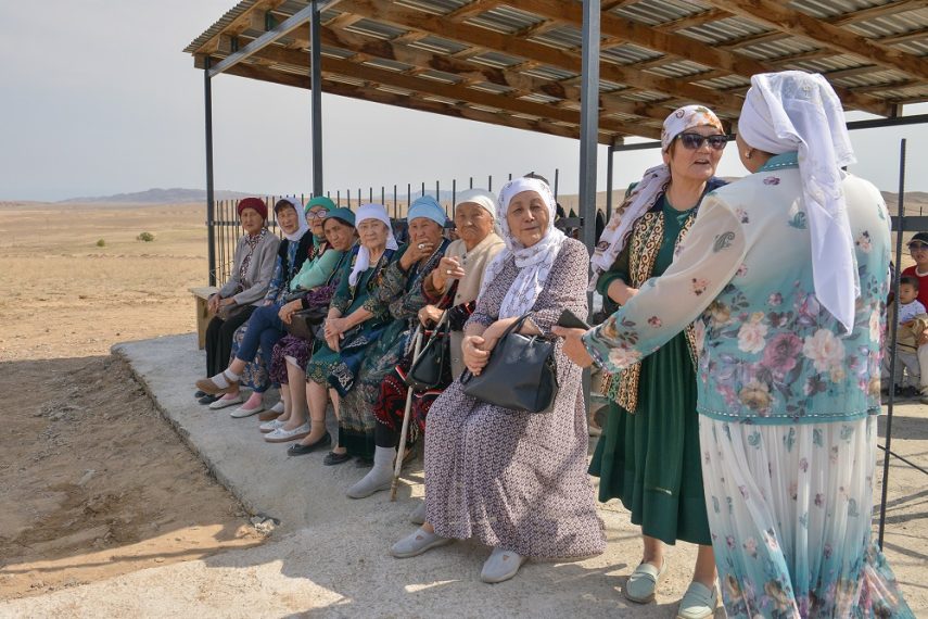 Что меня удивило и даже поразило – это отличная организация. Всё быстро, чётко, без суеты, шума. Молитва. Небольшая речь ведущего – он буквально несколько слов сказал о самой встрече и о тех, кто приехал на ас. Про нас тоже сказал – мы хоть и не местные, и не родственники, но и не чужие. Мы – это несколько человек из команды «Охотников за петроглифами» во главе с руководителем проекта и его идейным вдохновителем Ольгой ГУМИРОВОЙ.