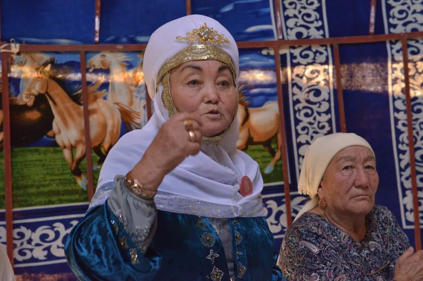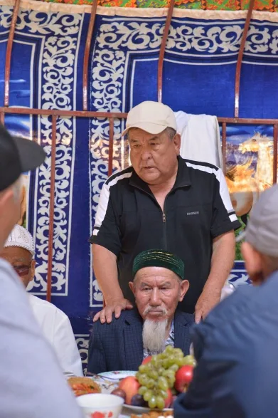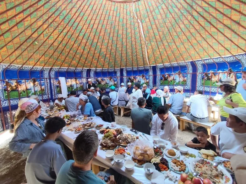 Сентябрь – тёплый месяц в этом регионе. Солнце греет (жарит), как летом, в степи без тени долго не выдержать… Столы для аса поэтому были накрыты в юртах. Участники очень степенно, не толпясь, разошлись по юртам и нас подхватили – завели в центральную. Традиционные казахские блюда, всевозможные угощения, чай, кумыс… За застольем вспоминали тех представителей рода, кто уже ушёл, и давали напутствия тем, кто совсем юн.