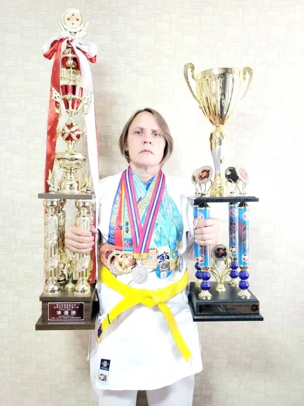 – Я тренер по киокушинкай каратэ, три года тренирую детей. В этом – мой смысл жизни, – рассказала спортсменка. – Начала заниматься этим видом боевого искусства в 45 лет, когда мой средний сын Аркадий пришёл в секцию. Через полгода я тоже подошла к тренеру и спросила у него, можно ли мне заниматься этим спортом. А там, к слову, были только дети. И он ответил: «Пожалуйста, приходите и занимайтесь». С тех пор я и начала заниматься киокушинкай каратэ. Сейчас мне 50 лет, и за эти пять лет у меня появились достижения. Я выступала на международных и республиканских турнирах, на чемпионате Республики Казахстан, стала чемпионкой. Сегодня я – кандидат в мастера спорта.