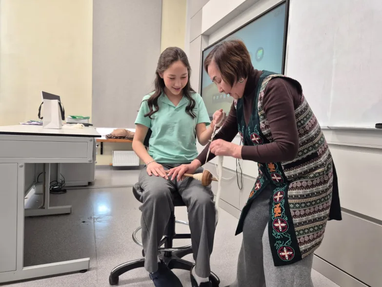 Благодаря организованному школой традиционному празднику Ұлттық Фестиваль – 2026 восьмиклассница Сагила впервые держит в руках чудной инструмент и собственноручно прядет из войлока, постигая удивительное ремесло наших апашек.