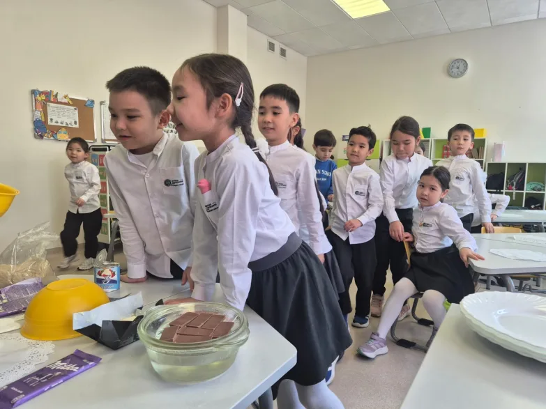 А в другом классе малыши восторженно наблюдают за тем, как готовится казахское лакомство — жент.