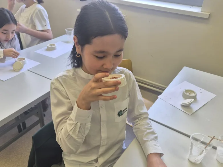 В руках первоклассницы алматинской частной школы имени Шокана Уалиханова Мадины оживают сакральные узоры наших далеких предков. В этом классе самые юные воспитанники расписывают шкатулки в форме юрты и асыков.