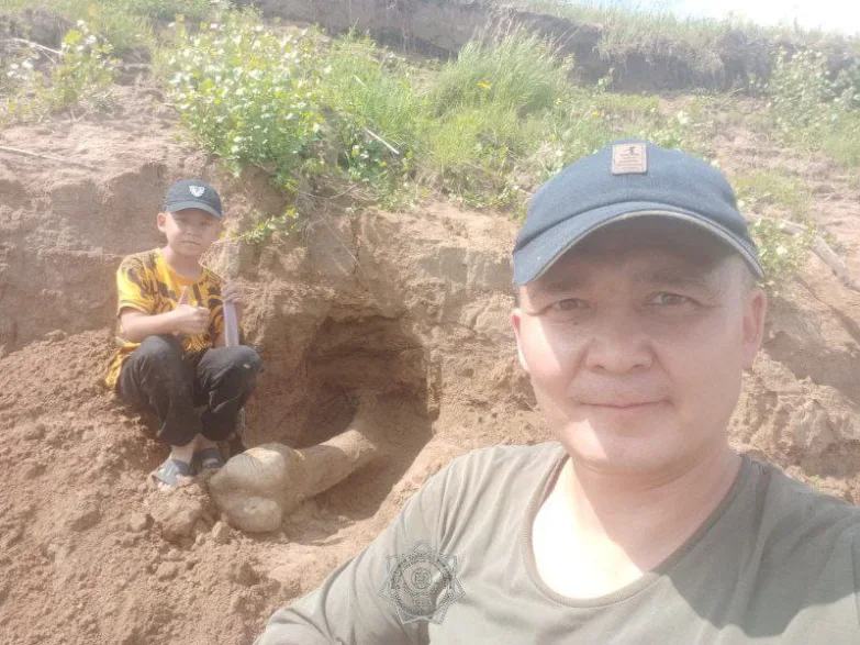 Автор открытия – начальник управления предупреждения чрезвычайных ситуаций департамента по ЧС Северо-Казахстанской области Асет ШАЙКИН. Он рыбачил на живописном берегу реки Есиль в Кызылжарском районе, недалеко от Петропавловска, когда увидел у воды торчащую огромную кость. Он сразу подумал, что это привет из далёкого-далёкого прошлого.