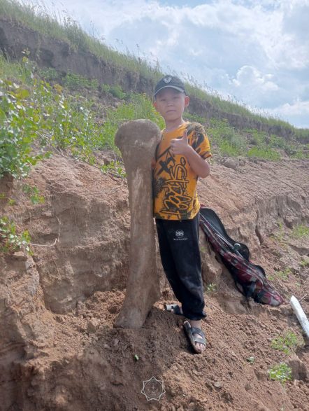 Автор открытия – начальник управления предупреждения чрезвычайных ситуаций департамента по ЧС Северо-Казахстанской области Асет ШАЙКИН. Он рыбачил на живописном берегу реки Есиль в Кызылжарском районе, недалеко от Петропавловска, когда увидел у воды торчащую огромную кость. Он сразу подумал, что это привет из далёкого-далёкого прошлого.